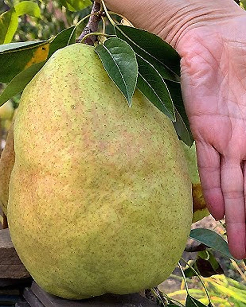 Уникальный сорт, сочетающий необычайно крупные плоды (до 500 г) с компактными размерами дерева (высота до 2,5 м). Груши отличаются изысканным вкусом: белая нежная мякоть имеет мелкозернистую маслянистую текстуру и высокую сочность с гармоничным сладким вкусом и легкой пикантной кислинкой.