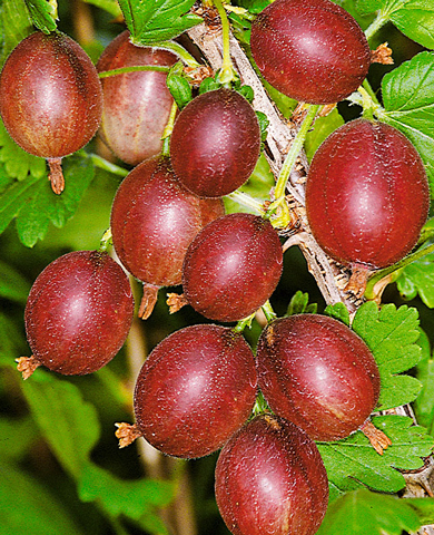 Невысокий куст с крепкими, толстыми побегами, сверху до-низу усыпанными крупными, ягодами. Ведь не зря этот сорт крыжовника получил такое название – Черносливовый. Ягоды покрыты восковым налетом, достигают веса 10 г, имеют овальную форму, и в полной зрелости становятся почти черными. Кожица тонкая, а мякоть сочная и нежная. Вкус тоже необычный, сочетает в себе кисло-сладкие нотки со специфическим ароматом сливы.