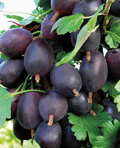 Изысканный диетический десерт из собственного сада! Фиолетовые ягоды массой до 5 г – округлые, с плотной кожицей и сочной кисло-сладкой мякотью. Не растрескиваются, не осыпаются, созревают постепенно – с конца июля до середины августа. Подходят для свежего употребления, заморозки и других заготовок, долго хранятся и богаты полезными веществами. Кустарник слабораскидистый, бесшипный, быстро наращивает побеги. Не боится ни возвратных заморозков, ни жары, подходит практически для любого региона страны, способен плодоносить 16–19 лет.