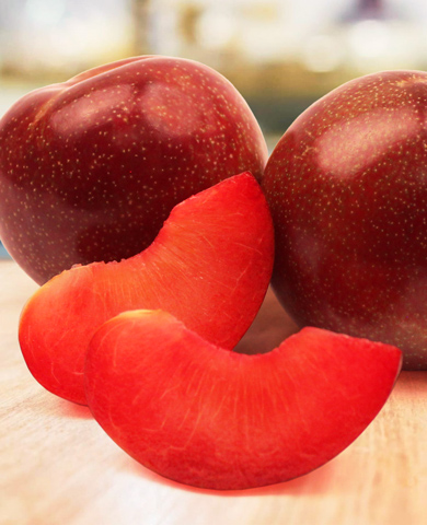 Один из первых в мире гибридов, который сочетает в себе качества сливы, абрикоса и персика! Урожай появляется уже на 2–3-й год после посадки, и он действительно впечатляет – более 30 кг с одного дерева! Плоды крупные, округлые, темно-бордовые, длительное время удерживаются на ветвях, не опадая.