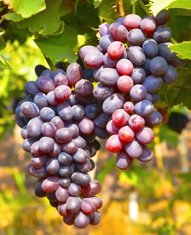 Виноград Кишмиш Юпитер Этот сорт, получивший лучшие качества от двух разновидностей Арканзаса, быстро завоевал популярность в России. Ягоды темно-фиолетовые, овальной формы, с восковым налетом, сладкие и сочные, с легким мускатным послевкусием и, что особенно приятно, без косточек. Кисти небольшие (до 300 г), полностью покрытые ягодами, созревают в августе. Лоза не только приносит хороший урожай, но и служит эффектным декоративным украшением для террас и беседок. Сорт отличается зимостойкостью до −27 °С.