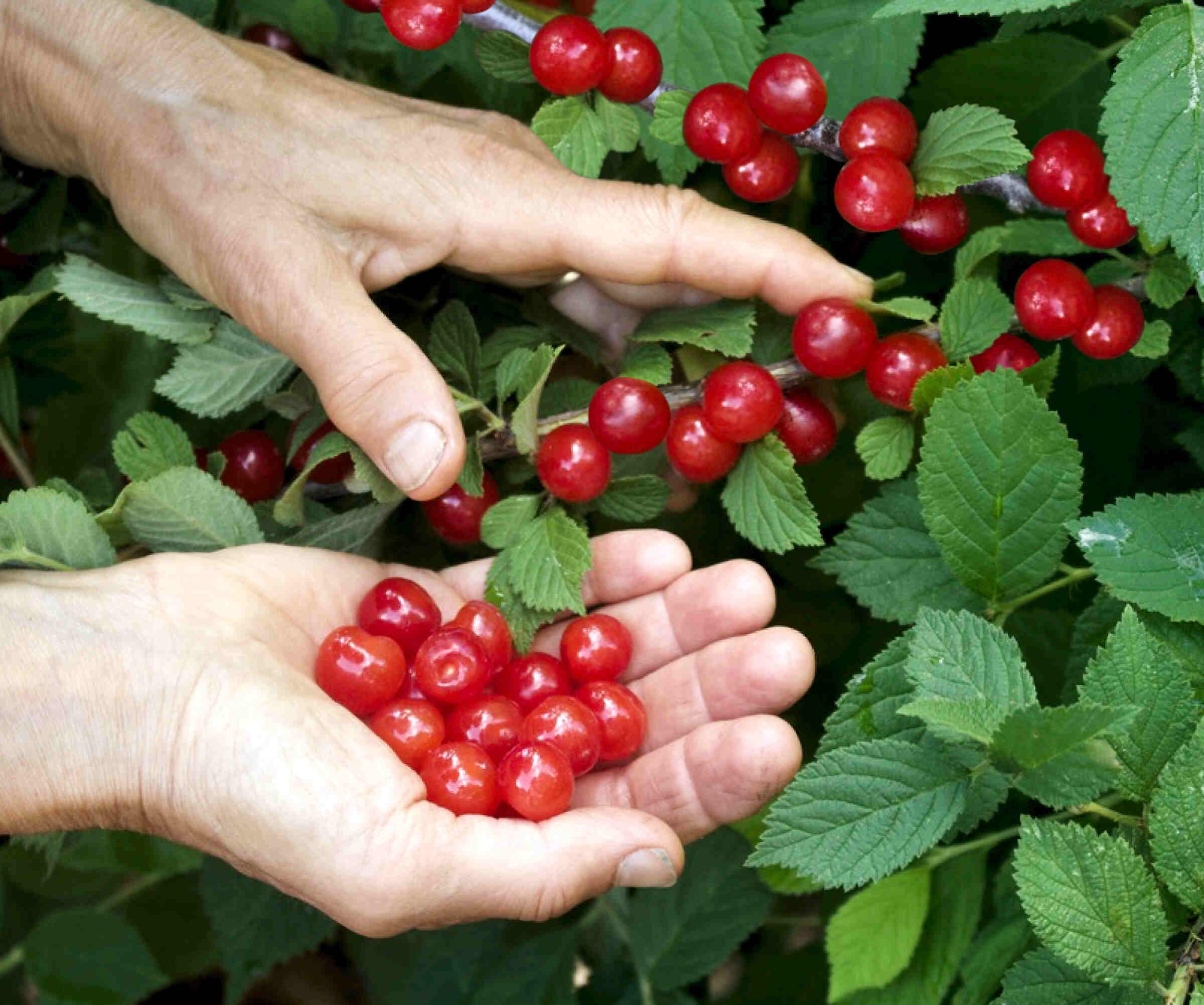 Поливать вишню нужно не часто, но обильно (5–6 леек под каждое дерево). В жаркое лето поливают один раз в неделю. Начиная с третьего года, приступают к формированию кроны. В первую очередь удаляют ветви, растущие внутрь кроны или под острым углом, перекрещивающиеся, а также засохшие и поломанные. Как правило, в кроне оставляют 8 – 10 самых сильных ветвей. Центральный побег укорачивают до высоты 3 м, чтобы облегчить уход за деревом и иметь возможность собирать ягоды, стоя на земле (а не с лестницы, как делают некоторые садоводы, вовремя не сформировавшие вишню).