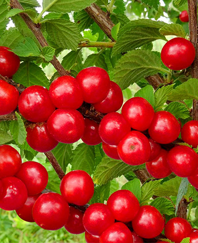 Эта войлочная вишня станет настоящей гордостью вашего участка. Куст высотой всего 1,2 м удивляет не только компактностью, но и высокой урожайностью – до 9,6 кг с куста. Ярко-розовые плоды, весом 3,6–4 г, созревают в конце июля и радуют насыщенным кисло-сладким вкусом и сочностью. Мякоть плотная, отрыв сухой, что делает ягоды удобными для сбора и хранения. Вишня отлично переносит как зимние морозы, так и весенние заморозки, демонстрируя высокую стойкость и способность адаптироваться к различным климатическим условиям.