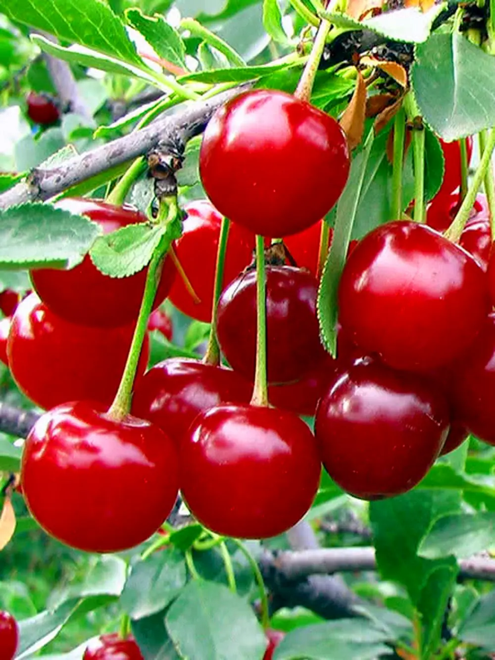 Этот компактный кустарник достигает в высоту около 2,5 метров. Поскольку сорт является лишь частично самоплодным, для завязывания урожая ему потребуются соседи-опылители из числа других косточковых культур. Первые плоды вы сможете собрать уже на четвертый год жизни растения. И затем каждую середину июня под сферической, слегка поникающей кроной вас будет ждать щедрый урожай. Ягоды отличаются крупным размером и сладким, настоящим десертным вкусом, в котором угадываются нотки и вишни, и черешни. Вероятно, именно эта уникальная особенность и подарила сорту его название.