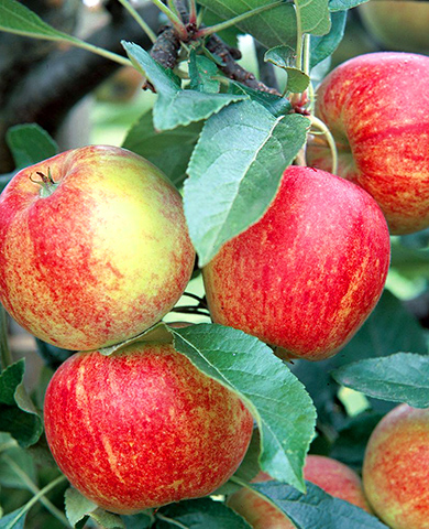 Отменная скороплодность: сорт начинает приносить плоды уже на 2-м году жизни. Яблоки крупные, весят около 140 г и имеют плоскоокруглую форму, изначально зеленоватые, а в полной зрелости становятся белыми с темно-красным румянцем, что делает их очень привлекательными. Могут храниться до 2 месяцев. Мякоть белая, плотная и мелкозернистая, с отличным кисло-сладким вкусом. Полукарликовое дерево с горизонтально-плоской кроной. Созревание плодов в конце августа – начале сентября.