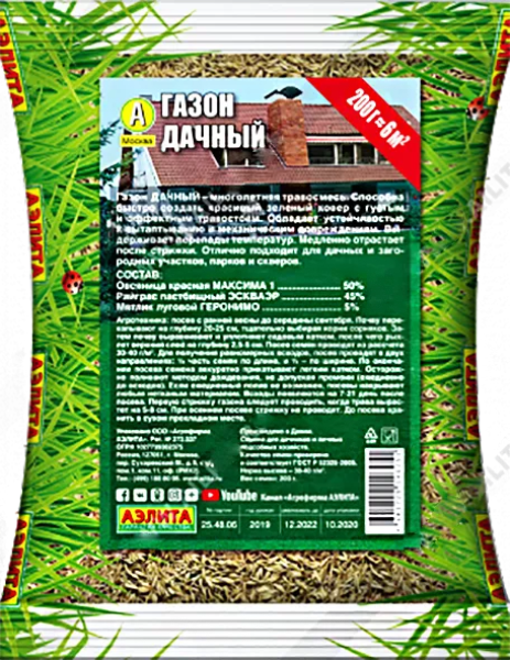 Семена Газон Дачный. Газон ДАЧНЫЙ – многолетняя травосмесь. Способна быстро создать красивый зеленый ковер с густым и эффектным травостоем. Обладает устойчивостью к вытаптыванию и механическим повреждениям. Выдерживает перепады температур. Медленно отрастает после стрижки. Отлично подходит для дачных и загородных участков, парков и скверов.