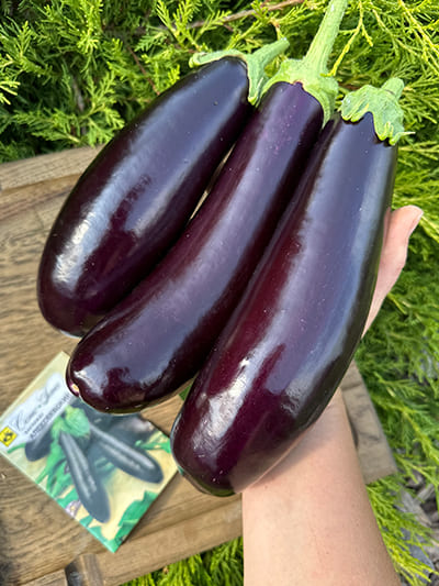Семена Баклажан Алексеевский. Сорт раннеспелый. От всходов до созревания 95–100 дней. Растение полураскидистое, стебель короткий до среднего, без антоциановой окраски, со слабым опущением. Лист средний, зеленый, выемчатый. Плоды цилиндрической формы, красивой темно-фиолетовой окраски, сильно глянцевые, гладкие, длиной 15–18 см., диаметром 4–6 см., массой 100–190 г. Рекомендуется убирать плоды массой не более 190 г., при большей массе и при переходе в биологическую спелость плоды светлеют. Шипы на чашечке отсутствуют или очень редкие. Мякоть белая, без горечи. Обладает уникальными вкусовыми качествами. Содержание сухого вещества 7,7%. Сорт отличается высокой товарностью плодов и транспортабельностью. Используется для всех видов промышленной переработки и домашней кулинарии. Схема посадки 70х30 см. Урожайность 6–8 кг/м2.