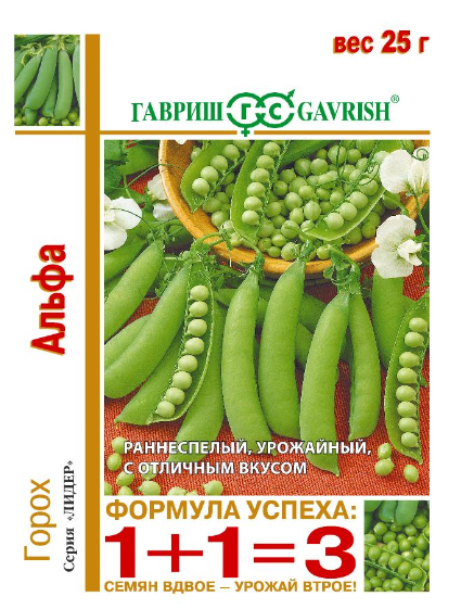 Раннеспелый (46–53 дня от полных всходов до технической спелости) высокоурожайный лущильный сорт. Растение полукарликовое, высотой 50–55 см. Листья сизо-зеленые, цветки белые, по два на цветоножке. Первый боб расположен на 8–10 узле. Бобы по форме от слабоизогнутых до саблевидных, остроконечных, длиной 7–9 см. В бобе 5–9 горошин. Горошек мозговой, темно-зеленый, выравненный по размеру и окраске, очень вкусный. Сорт устойчив к аскохитозу и фузариозу. Рекомендован для консервирования и использования в свежем виде. Товарная урожайность бобов 1,0–2,2 кг/м2, горошка — 0,7–1,2 кг/м2. Посев проводят ранней весной на солнечной стороне участка на глубину 4–6 см. Схема посева: 15x30 см. Растения нуждаются в опоре.