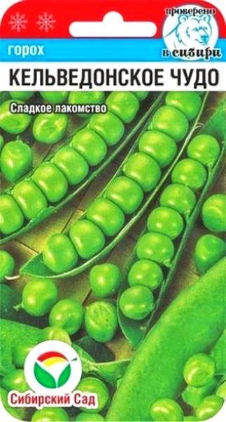 Семена Горох "Кельведонское чудо". Раннеспелый низкорослый (45-60 см.) сорт универсального назначения. От полных всходов до начала сбора стручков 55-65 дней. Бобы прямые, длинные, ровные. Расположены по два на цветоносе, содержат по 7-8 темно-зеленых горошин, сладких на вкус. Сорт устойчив к неблагоприятным условиям выращивания, отличается дружной высокой урожайностью (до 40 кг зерна молочной спелости со 100 кв. м.). Рекомендуется для потребления в свежем виде, замораживания и консервирования. Посев проводят весной с конца апреля по конец мая на глубину 2-3 см, желательно в некислую, хорошо прогреваемую влагоемкую почву. Схема посева 15x20-30 см, нормы высева 100 семян на 1 кв.м. Для лучшего роста растений желательно создать опору. Уход заключается в рыхлении почвы, поливе и подкормке минеральными удобрениями. Урожай собирают по мере созревания.