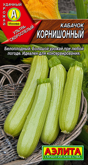 Семена Кабачок белоплодный Корнишонный. Ультраскороспелый сорт с длительным периодом плодоношения. От всходов до первого сбора 37-40 дней. Растения мощные, кустистые. Плоды длиной 40-60 см, массой 0,8-1,4 кг. Мякоть белая, нежная. Вкусовые качества отличные. Подходит для кулинарии, консервирования и замораживания. Сорт неприхотливый, устойчив к перепадам температуры. Пригоден для длительного хранения. Урожайность – 7-8 кг/м2. Агротехника. Посев в открытый грунт в конце мая – начале июня в лунки по 2-3 шт., с шагом 70 см между лунками. В фазе первого настоящего листа всходы прореживают, оставляя по одному растению в лунке. Возможен посев на рассаду. 30-дневную рассаду высаживают в открытый грунт в конце мая - начале июня. Для хорошего роста и обильного плодоношения растениям необходим своевременный полив, регулярная прополка, рыхление и подкормка минеральными удобрениями.
