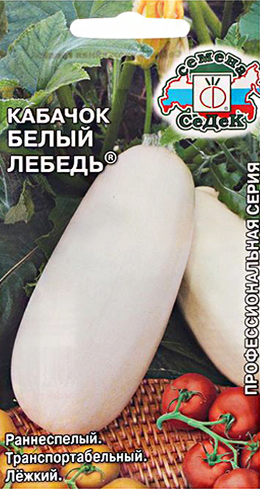 Семена Кабачок Белый лебедь. Раннеспелый (45-50 дней) сорт. Растение кустовое, средней мощности. Плоды выравненные, цилиндрические, гладкие, белые, с товарной массой 0,6-0,8 кг. Мякоть среднеплотная, нежная, с хорошими технологическими качествами. Ценность сорта: выравненность, высокая товарность, транспортабельность и лежкость плодов. Рекомендуется для кулинарной переработки и консервирования.