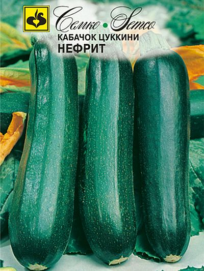 Цукини Нефрит - среднеспелый сорт. От всходов до первых сборов 65–68 дней. Растение кустовое, малоплетистое, лист зеленый с белой пятнистостью. Плод цилиндрической формы, в технической спелости зеленый, в полной – темно-зеленой окраски с диффузной, более светлой пятнистостью, гладкий, массой 1,1–1,5 кг. Мякоть светло-кремовая, толстая, волокнистая, очень нежная, сочная. Кора средняя, деревянистая. Семенное гнездо маленькое, светло-кремовой окраски. Дружносозревающий. Вкусовые качества плодов отличные. Товарность и транспортабельность хорошая. Рекомендуется для консервирования и приготовления икры, домашней кулинарии. Схема посадки 1,4х0,7 м. Урожайность 12–14 кг/м2.