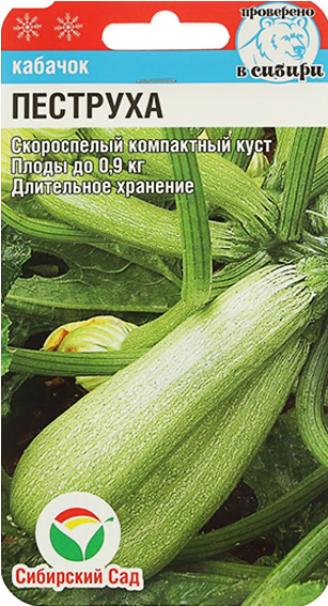 Скороспелый урожайный сорт кабачка-цуккини для открытого грунта. От всходов до уборки 42-51 дней. Вызревшие плоды долго хранятся на свету при комнатной температуре. Хорошо переносит засуху, не требователен к регулярному поливу в период цветения и плодоношения. Ценный диетический продукт, содержит сахар, пектиновые вещества, минеральные соли (особенно много калия) и витамины. Растение кустового типа, компактное. Плоды цилиндрической формы с тонкой кожурой зеленого цвета в характерную светло-зеленую крапинку, гладкие, весом до 1 кг. Мякоть белая, сочная, хрустящая, малосладкая. Максимальное количество полезных веществ в завязях и молодых плодах диаметром 6-8 см. Благодаря повышенному содержанию сухих веществ плоды хороши для засолки, маринования и всех видов домашней кулинарии.