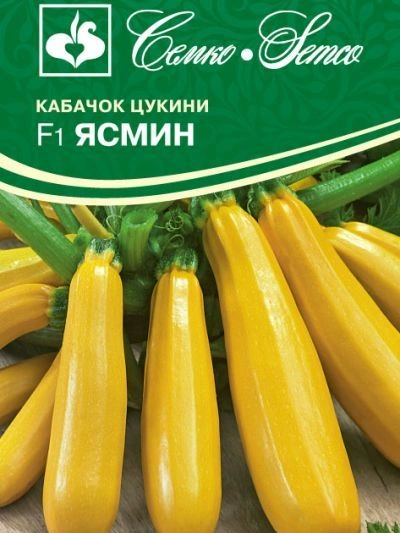Кабачок цукини Ясмин F1 - раннеспелый гибрид. От всходов до первого сбора 40-42 дня. Растение кустовое, полуоткрытое. Лист крупный, зелёный с небольшой пятнистостью. Плоды цилиндрические с сужением к плодоножке, длиной 18-22 см, ярко-жёлтые, массой 0,5-0,8 кг. Поверхность гладкая с небольшой ребристостью, кора тонкая. Мякоть нежная, светло-кремовая. Гибрид кабачка цукини Ясмин F1 отличается высоким содержанием бета-каротина, сухого вещества до 5,5%, сахаров до 3,5%. Вкус деликатесный, отличный, товарность высокая. Дружносозревающий, пластичный, пригоден для хранения до 6 месяцев. Гибрид устойчив к желтой мозаике цукини (ZYMV) и мозаике арбуза (WMV). Схема посадки 70х70 см. Урожайность 10-12 кг/м2.