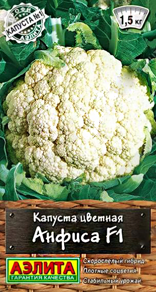 Новый раннеспелый гибрид цветной капусты. Его ценность в устойчивости растений к комплексу неблагоприятных факторов среды, стабильно высокой урожайности и выравненности головок. От появления всходов до срезки первой продукции проходит 95-100 дней. Головка сливочного оттенка, плотная, массой до 1-1,5 кг, листьями не прикрыта. При своевременной уборке урожая соцветие сохраняет однородный цвет, не утрачивает структуру. Вкус свежей и приготовленной продукции отличный.