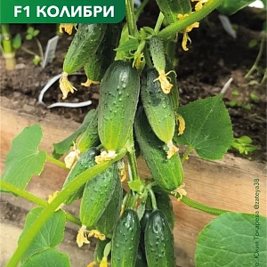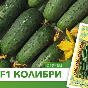 Семена Огурец Колибри F1. Огурец КОЛИБРИ является новинкой в группе "суперпучковых пикульно-корнишонных гибридов". Партенокарпический пучковый корнишонный гибрид балконного сортотипа, преимущественно женского типа цветения; предназначен для выращивания в весенне-летнем обороте на балконах, верандах, лоджиях, в открытом грунте и весенних теплицах. Скороспелый, с ослабленным ветвлением. Боковых побегов много, но они короткие, детерминантного типа. Листья мелкие, расположены горизонтально поверхности грунта. Междоузлия основной плети очень короткие. Зеленцы короткие, бугорчатые, белошипые, длиной 5-8 см, диаметром 2,5-3,5 см, массой 60-80 гр., веретеновидной формы, на длинной плодоножке. Частота расположения бугорков средняя, бугорки среднего размера. На поверхности зеленцов выражены короткие светлые продольные полоски. В узлах формируется от 2 до 8-10 завязей. Вкусовые и засолочные качества высокие. Гибрид устойчив к большинству заболеваний. Плотность посадки в теплицах 2,5-3 раст./м2, в открытом грунте 4-5 раст./м2. Всегда правильной формы, ровненький, калиброванный, зелененький, с элегантными ;полосками и крупными бугорками. КОЛИБРИ не похож на все существующие сегодня сорта и гибриды: садоводы не скрывают ;своего удивления - Неужели огурцы могут быть такими!!!