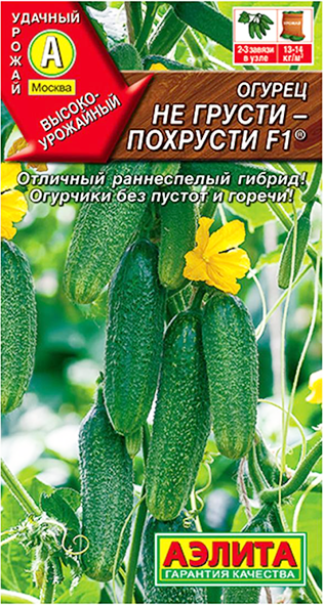 Раннеспелый пчелоопыляемый гибрид. От всходов до начала плодоношения 40-45 дней. Цветки, преимущественно, женского типа. Завязи закладываются пучками по 2-3 штуки в каждом узле. Плоды белошипые, средней длины, массой 90-105 г., не перерастают. Огурчики отличного вкуса, хрустящие, сочные, без горечи. Подходят для соления и консервирования. Гибрид предназначен для выращивания в открытом грунте и теплицах. Урожайность в з/г до 13-14 кг/м2.