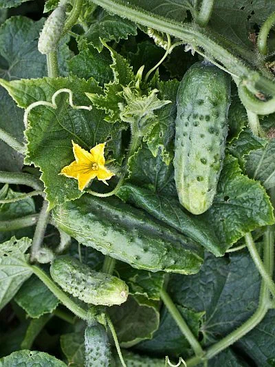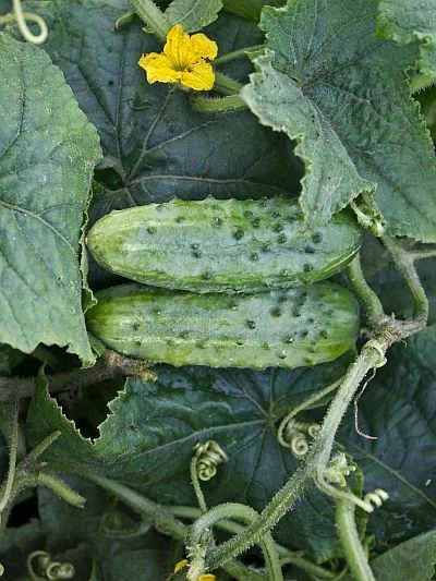 Огурец цилиндрический, редкокрупнобугорчатый, со сложным опушением, черношипый, без горечи, длиной 8–10 см, массой 80–90 г.