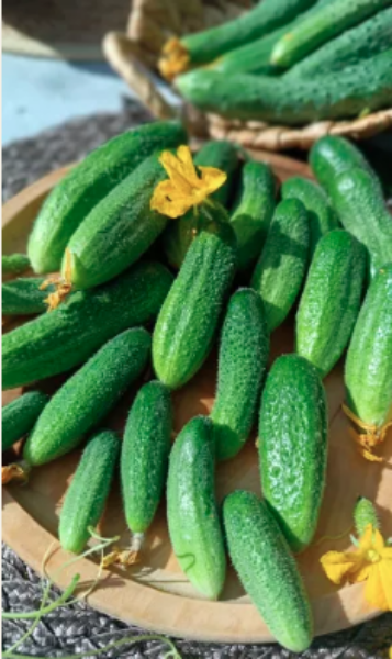 Раннеспелый, высокоурожайный, до 13 кг/м2, пчёлоопыляемый гибрид (40-44 дня от всходов до плодоношения), для выращивания в открытом грунте и под плёночными укрытиями. Зеленец цилиндрический, мелкобугорчатый, без пустот и горечи, хрустящий, длиной 8-10 см, массой 90-100 г. Вкусовые качества отличные. Плоды используются в свежем виде, для маринования и для засолки в начале сезона сбора плодов. Благодаря раннеспелости и продолжительному плодоношению гибрида, с начала лета и до осени вы будете иметь стабильные урожаи. Огурцы выращивают, высевая семенами в грунт или через рассаду. Для получения рассады семена высевают в конце марта – начале апреля, на глубину 1-2 см, при температуре 25 °С. Рассаду высаживают в грунт, когда минует угроза заморозков. Семенами огурец высевают в конце мая. Глубина заделки 1-1,5 см. Посевы укрывают плёнкой. Схема посадки 60 х 15 см. Для отличных урожаев необходим полив тёплой водой, подкормки раз в 2 недели, прополки, рыхление. Нерегулярный сбор плодов снижает урожайность.