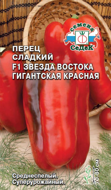 Среднеспелый (120-130 дней) крупноплодный гибрид для выращивания в открытом грунте и пленочных теплицах. Растение высотой 70-80 см, открытого типа, формирует одновременно 7-10 плодов. Плоды очень крупные, кубовидно-призмовидные, в технической спелости – темно-зеленые, в биологической –красные, длиной 18-20 см, массой 300-400 г, сочные, сладкие. Толщина стенки 0,9-1,1 см. Урожайность 8-8,5 кг/м2. Ценность гибрида: устойчивость к комплексу болезней, стрессоустойчивость, высокие вкусовые качества плодов, транспортабельность, пригодность к хранению. Рекомендуется для употребления в свежем виде и переработки.