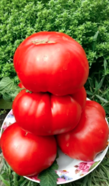 Среднеспелый, высокоурожайный сорт для открытого и закрытого грунта. Растение мощное, высотой 100-120 см. Плоды плоскоокруглой формы, малинового цвета, массой 200-400 г, сочные, мясистые, отменного вкуса. Ценность сорта: крупноплодность, высокая урожайность и товарность плодов, устойчивость к болезням, отличные диетические качества, способность длительно плодоносить. Рекомендуется для употребления в свежем виде, переработки на томатопродукты и консервирования.
