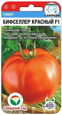 Ранний БИФ-томат, до 30 плодов одновременно, 400гр сахарной мякоти. Куст высотой 1,5-1,7м одновременно нагружается 5-7 кистями с 6-7 плодами.