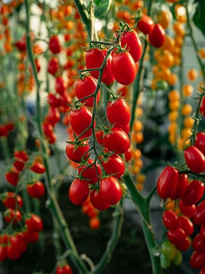 Томат Черри от Юрия F1 - ранний индетерминантный гибрид томата для защищенного грунта. От всходов до созревания 80–85 дней. Растение компактное, открытое, с коротким расстоянием между кистями, формируется в один стебель. Первое соцветие закладывается над 7–9 листом. Кисть сложная с 20–30 плодами. Помидоры сливовидные, с небольшими гранями, ярко-красные, массой 15–25 г, плотные, транспортабельные, лежкость до 30 дней. Вкус отличный и, в определенной мере, может быть эталоном в ближайшие годы. Гибрид обладает хорошей завязываемостью в неблагоприятных условиях. Томат Черри от Юрия F1 устойчив к вирусам томатной мозаики (TоMV), желтого скручивания листьев (TYLCV), вертициллезу (Va, Vd), фузариозу (Fol1–2), кладоспориозу (Ff), галловым нематодам (Ma, Mi). Схема посадки 70х40 см. Урожайность 12–15 кг/м2.