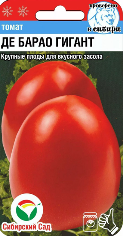Среднепоздний сорт для пленочных теплиц и открытого грунта (в коловой культуре). Растение индетерминантное. От обычного сорта Де Барао отличается большим размером плодов: 10х7 см. В кисти 4-5 кубовидных плода массой 150-300 г каждый. Плоды мясистые, сочные, необычайно вкусны в свежем виде! Сорт универсальный, пригоден для любых видов переработки.