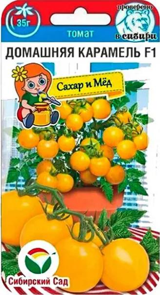 Растение карликовое, высотой 20-25 см. Густо усыпано золотистыми плодами, собранными в красивые обильные кисти. Томаты массой 30-35 г., округлые, выровненные, с гладкой блестящей кожицей ярко-желтого цвета. Вкус мякоти приятный, карамельно-сладкий. Плоды не растрескиваются, походят для свежего употребления и цельноплодного консервирования. Гибрид устойчив к основным заболеваниям пасленовых культур. Урожайность до 1,5 кг с растения.
