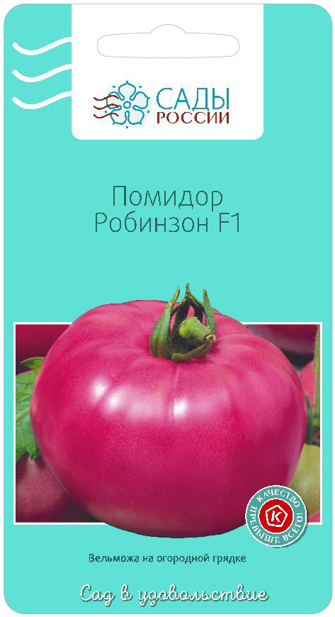 Семена Томат Робинзон F1. Томат «Робинзон» предназначен для выращивания в неустойчивых климатических условиях. Короткое и прохладное лето не мешает «Робинзону» давать хороший урожай. Сорт очень раннеспелый. На 90 сутки от всходов можно собирать спелые томаты. Растение детерминантное, высота не превышает 120 см. Помидор привлекает своим ярко-малиновым цветом и крупными плодами, 200-300 грамм. По всей поверхности кожицы просматриваются мелкие крапинки светло-розового цвета. Кожица плотная, но не грубая. Мякоть сочная, сахаристая. Форма плодов округло-приплюснутая. Прекрасно подходит для свежего потребления и переработки на томатный сок. Устойчив сорт и к различным заболеваниям.