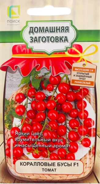 Индетерминантный раннеспелый гибрид для защищённого и открытого грунта. От всходов до начала созревания 100-105 дней. Растение высокорослое нуждается в подвязке и формировании, отлично завязывает плоды в стрессовых условиях, формирует длинные, плотные, красивые кисти по 15-30 плодов. Плод округло-овальный, темно-красный, блестящий, массой 17-19 гр., отличного вкуса. Великолепно подходит для декорирования блюд, салатов, и цельноплодного консервирования.