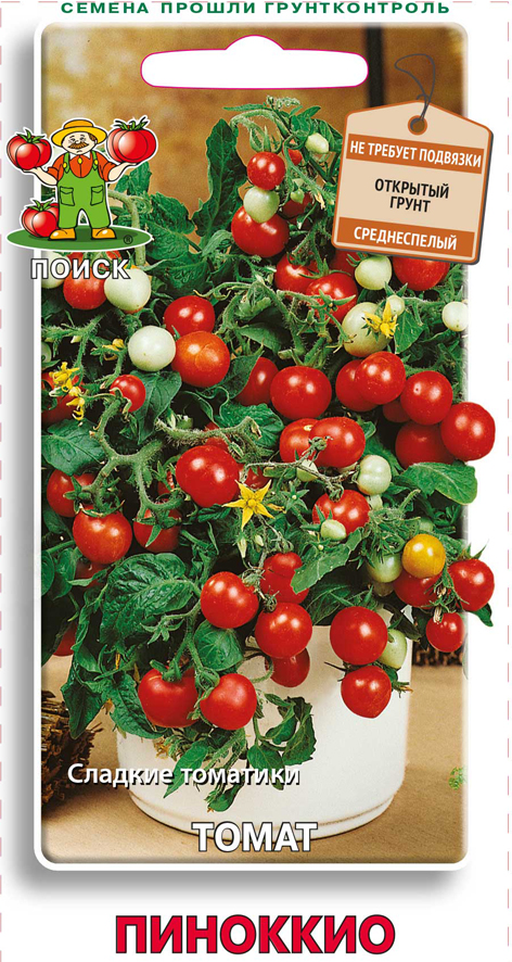 Семена Томат Пиноккио. Сладкие томатики! Можно выращивать на балконе в контейнерах. Среднеспелый сорт. Период от всходов до созревания 110-115 дней. Куст компактный, низкорослый – 20-35 см. Плоды плоскоокруглые, красные, массой 20-35 г. Отличные вкусовые и товарные качества. Универсальное назначение.