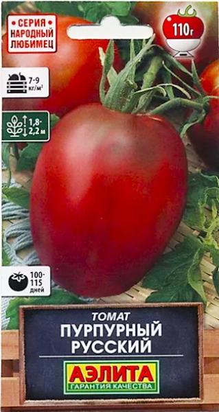 Семена Томат Пурпурный русский. Продуктивный сорт с красивыми и вкусными плодами необычной окраски. В защищенном грунте позволяет получать стабильно высокую урожайность (7-9 кг/м2) в средние сроки, через 110-115 дней после появления всходов. Растения индетерминантные, высотой в теплице 1,8-2,2 м. Томаты сливовидной формы – отдельные с носиком, плотные, мясистые, среднего размера, массой от 90 до 110 г. Хорошо хранятся и транспортируются. Применяются для свежего употребления и домашних заготовок на зиму.