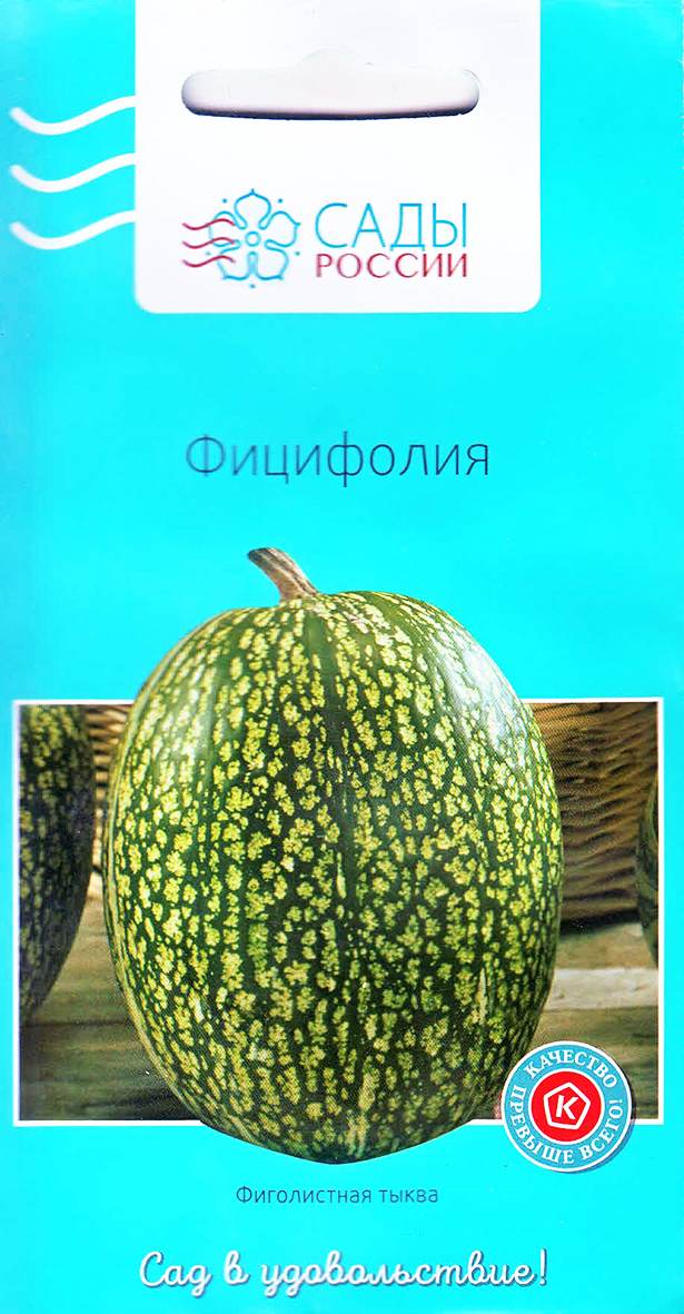 Заокеанская чудо-тыква, внешне похожая на арбуз. Уникальна своей урожайностью. Со стеблей растения, достигающих 15 м в длину, можно собрать до 30 плодов, каждый весом до 5 кг. Они могут храниться до 4 лет благодаря тому, что кожура у нее очень прочная. Кремово-белая, нежная мякоть по вкусу больше похожа на кабачковую, богата клетчаткой, отличается приятным ароматом и повышенной сладостью. Из нее готовят десерты, овощные рагу, оладьи, салаты, запеканки. Черные семечки также съедобны, это - источник витамина группы В. Фицифолия неприхотлива в уходе. Растение обладает крепким иммунитетом и повышенной холодостойкостью, терпимо относится к недостатку влаги.