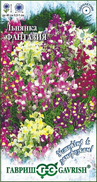 Семена Льнянка марроканская Фантазия. Однолетние растения с мутовчато расположенными линейными листьями, до 40 см высотой, образующет компактный кустик. Цветки мелкие, синие, сиреневые, белые, желтые, с белым и желтым центром, собраны на верхушке стеблей в редкие, изящные кисти до 12 см длиной. Цветет с июня по сентябрь. Растение предпочитает солнечные места, рыхлые плодородные почвы. При выращивании рассады посевы проводят во второй половине апреля. Семена слегка вдавливают в почву, землей не присыпают, посадочную емкость накрывают стеклом и ставят в освещенное место. При температуре 18-20 0С всходы появляются на 10-14 день. Рассаду высаживают в конце мая. Можно сеять непосредственно в грунт в мае. Ее посадки украсят любой цветник, создают эффект нарядного "ковра". Чтобы растения зацвели повторно, их обрезают на высоте 10-15 см.