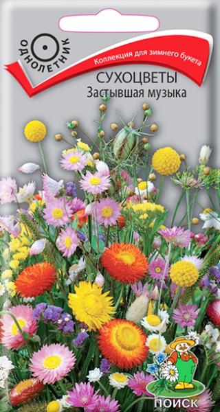 Семена Сухоцветы Застывшая музыка. Высота растений от 30 до 80 см. Декоративность растениям придают сухие, ярко окрашенные листочки-обертки. Обильное цветение с июля по октябрь. Используют для украшения цветников и для зимних букетов.