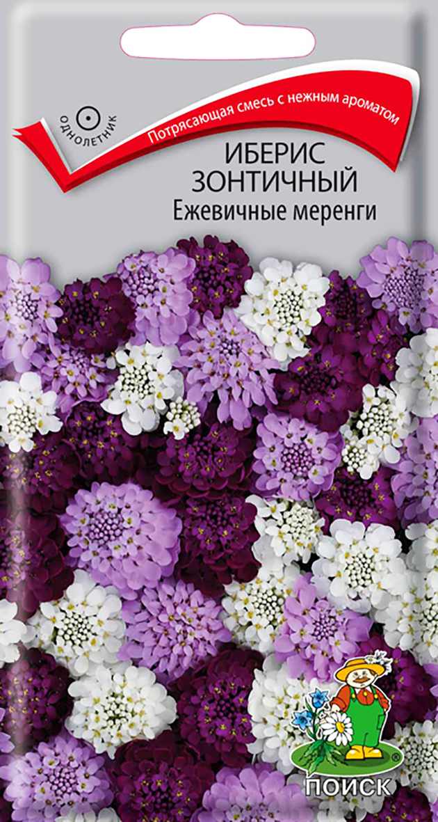 Семена Иберис зонтичный Ежевичные меренги. Потрясающая смесь с нежным ароматом! Ветвистое растение раскидистой формы, высотой 30 см. Душистые цветки собраны в плотные соцветия до 5 см диаметром, белой, фиолетовой и пурпурной окраски. Цветет с июня в течение двух месяцев. Используют для сборных цветников, рабаток и бордюров. Агротехника. Растение неприхотливое, растёт на любой хорошо дренируемой почве. Предпочитает солнечное место, но выносит и легкое затенение. Размножают посевом семян в открытый грунт в мае. Можно выращивать посевом в грунт под зиму по мерзлой почве. Глубина заделки семян 0,5 см. При температуре почвы +18°C всходы появляются через 14 дней. Расстояние между растениями 20-25 см. Семена соответствуют требованиям международных стандартов и ГОСТу РФ 12260-81