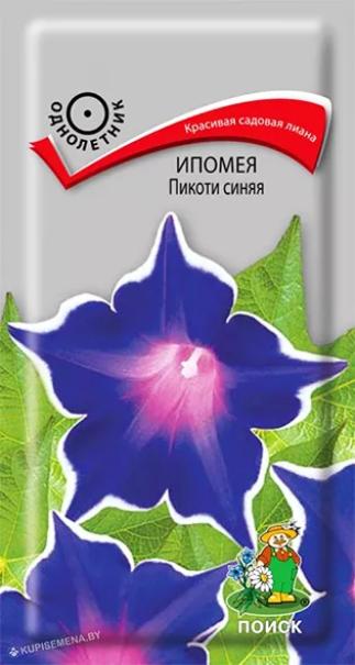 Семена Ипомея Пикоти синяя. Стебли достигают 2,5 м. длины. Листья крупные, сердцевидные. Цветы воронковидной формы яркие синие с каемкой по краю венчика, диаметром около 10 см. Цветет обильно с июля по октябрь. Широко используются для вертикального оформления цветников различного назначения.