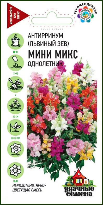 Выращивание львиного зева: советы по посадке и уходу Выбор места Львиный зев предпочитает солнечные участки, но может расти и в лёгкой полутени. В глубокой тени стебли сильно вытягиваются, а цветение становится редким. Почва Грунт должен быть питательным и воздухопроницаемым. Если почва тяжёлая и глинистая, добавьте песок и компост для рыхлости. За две недели до посадки желательно внести перепревший навоз. Также важно обеспечить хороший дренаж, так как застой воды вызывает корневую гниль. Посев семян Семена высевают в феврале-марте в рассадные ящики. Их не нужно заглублять — достаточно распределить по поверхности и накрыть стеклом или бумагой. При температуре 20–24 °C всходы появляются через 12–14 дней. Пикировка Пикировку проводят после появления первой пары настоящих листьев (у слабых сеянцев — второй). Если рассада развивается медленно, процедуру можно отложить. Высадка в открытый грунт Рассаду высаживают в цветники, когда минует угроза заморозков: в южных регионах — середина мая, в средней полосе и севернее — начало июня. Перед высадкой растения нужно закалить. Полив Полив должен быть регулярным, особенно в засуху, но без переувлажнения. Подкормки Через 2 недели после высадки вносят комплексное минеральное удобрение. Ещё через 14 дней подкормку повторяют. Обрезка Удаление увядших соцветий стимулирует рост новых побегов, делает куст пышнее и продлевает цветение. Подвязка Высокорослые сорта могут полегать под тяжестью цветов, поэтому их лучше подвязывать к опоре.