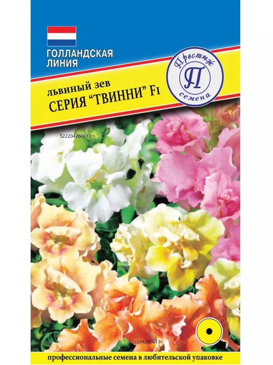 Однолетник. Смесь красок. Высота 25-30 см, ширина 20-25 см. Это первый низкорослый махровый F1 гибрид львиного зева на рынке. Растения с привлекательными полумахровыми и махровыми цветками, с мощным боковым ветвлением. Хорошо переносят жаркую и влажную погоду, поэтому на протяжении всего длительного периода обильного цветения сохраняют отличный вид. «Твинни» подходит для выращивания в 10-15 см горшках, вазонах, контейнерах. Семена равномерно распределяют по поверхности субстрата, предварительно хорошо увлажненному, и накрывают стеклом либо прозрачной пленкой. Для прорастания растения необходим свет и температура 18 градусов. При соблюдении этих условий всходы появляются на 7-10 день. Выращивают на свету, но избегая попадания прямых солнечных лучей. Подросшие растения пикируют в отдельные горшочки или ящики, оставляя 5 см между растениями. Акклиматизированные растения высаживают в грунт с шагом 20 см в начале мая.