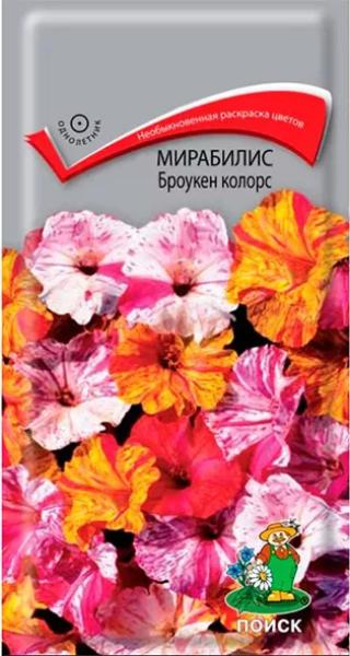 Семена Мирабилис Броукен колорс. Необыкновенная раскраска цветов! Многолетнее растение, используется как однолетник. Растение прямостоячее, ветвистое, высотой 50 см. Цветёт обильно с июня до заморозков. Цветы раскрываются после 15 часов, а закрываются утром. Используют для оформления цветников, рабаток.