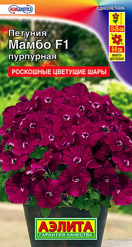 Семена Петуния Мамбо Пурпурная F1. Высота взрослых растений от 15 см (в горшках) до 25 см (о/г).