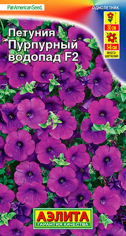 ПУРПУРНЫЙ ВОДОПАД – отличный вариант для подвесных корзин, балконных ящиков, высоких садовых контейнеров. Длинные, до 1 метра, стебли хорошо ветвятся, хорошо выдерживают порывы ветра. По обилию цветения он стоит в одном ряду с сурфиниями. Цветы устойчивы к дождям и экстремальным температурам. Кроме вертикального озеленения, может успешно применяться в качестве коврового почвопокровника. При минимальной заботе в виде регулярных поливов и подкормок эта петуния будет богатейшим источником ярких цветков и вашего хорошего настроения.