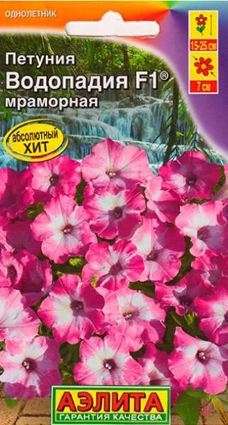 Семена Петуния Водопадия F1 мраморная. Абсолютный хит! Серия многоцветковых петуний каскадного типа, которая отличается совершенно новой полуампельной формой. Уникальность этих гибридов в том, что новые цветоносные побеги образуются без прищипки в пазухах листьев в середине куста, не оставляя пустот. Растения формируют пышные кустики, высотой 15-25 см. Поникающие побеги длиной до 70 см полностью усыпаны яркими насыщенными цветками диаметром 7 см. и спускаются восхитительным водопадом. Гибриды устойчивы к повышенным температурам и неблагоприятным погодным условиям. Однако мраморная расцветка при недостаточном освещении может изменяться. Петунии Водопадия F1 наилучшим образом подходят для подвесных кашпо и корзин.