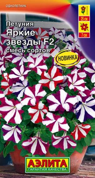 Великолепная смесь многоцветковых петуний, которая объединяет все звездные расцветки. Растения образуют очень красивую компактную форму куста, высотой до 25 см. Цветки очень насыщенного яркого цвета 5-7 см. Петунии данной смеси обладают отличными характеристиками – обильно и продолжительно цветут, не требует формировки, очень легки в уходе и устойчивы к неблагоприятным условиям. Рекомендуется использовать для создания цветников, выращивания на балконах и лоджиях.