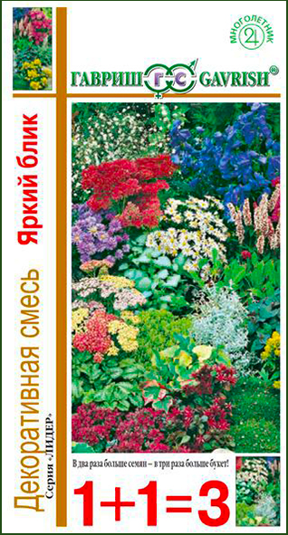 Гармоничная смесь многолетних стелющихся растений для оформления альпийских горок и бордюров. Растения непрерывно поочередно цветут с мая по сентябрь. Неприхотливы и для сохранения ухоженного и нарядного вида не требуют особого ухода. Предпочитают солнечные места с легкими плодородными почвами без застоя воды. Быстро разрастаются, хорошо зимуют. Посев на рассаду производят с конца марта до первой декады мая. Проростки пикируют и высаживают в мае-июне на постоянное место.