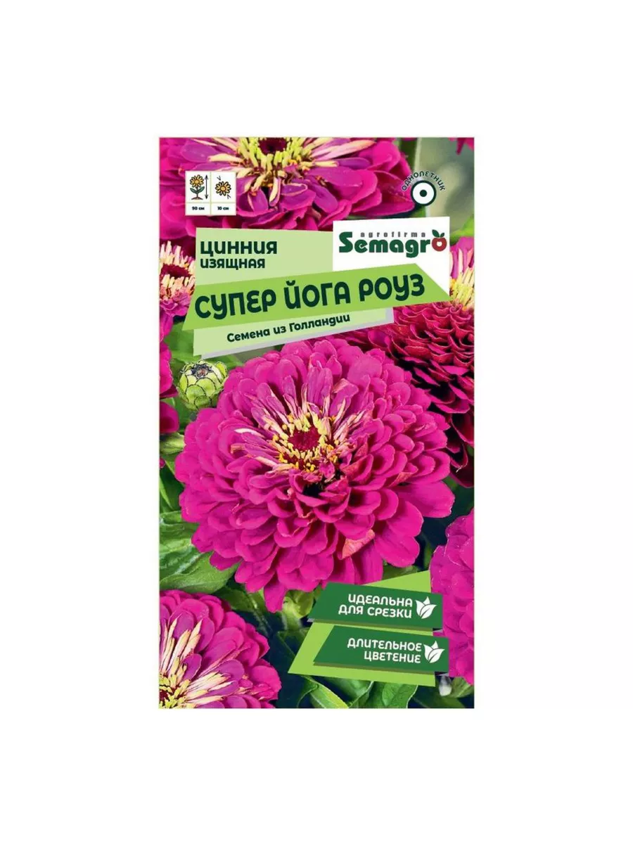 Семена Циннии изящной Супер Йога Роуз 20 шт. Посадка: март-апрель Схема посадки: 30*35 Диаметр цветка: 10 см Цветение: 1 июля - 15 сентября Однолетнее. Крупноцветковый сорт с махровыми цветками полушаровидной формы розового цвета до 10 см в диаметре. Для сохранения декоративности отцветшие соцветия удаляют. Цветет с июля по сентябрь, не теряя своих декоративных качеств. Идеален для срезки 1. Идеален для срезки 2. Длительное цветение