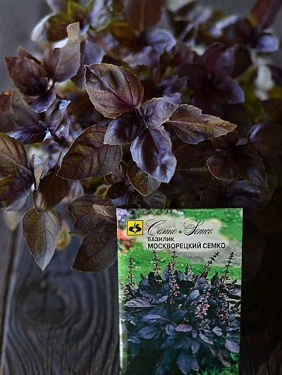 Семена базилика фиолетового данного сорта — среднеспелый (30–50 дней от всходов), компактный (30–40 см высотой) сорт с уникальной декоративной внешностью. Все растение, включая стебель и пониклые удлиненно-яйцевидные листья, имеет насыщенную фиолетовую окраску. Масса одного растения достигает 180–280 г. Главная ценность — сильный аромат со специфическим гвоздичным привкусом, который высоко ценится в кулинарии. Сорт универсален: предназначен для выращивания в открытом грунте, под укрытиями и как горшечная культура для подоконника.