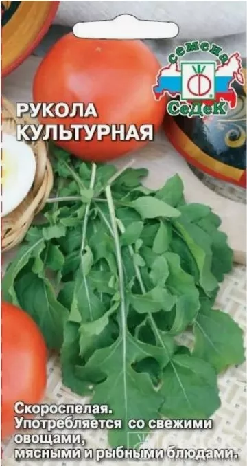 Скороспелый (20-25дней) вид руколы для выращивания в открытом и защищенном грунте. Розетка листьев полуприподнятая, высотой 15-20 см. Листья среднего размера, изумрудно-зеленые, лировидные, выемчатые по краю, с ярко выраженным горчично-ореховым вкусом и ароматом. Ценность сорта: холодостойкость, возможность произрастания на разных типах почв и многократного посева в течение лета, содержание большого количества витаминов, микроэлементов, минеральных солей. Молодые сочные свежие листья хорошо сочетаются со свежими овощами, мясными и рыбными блюдами.