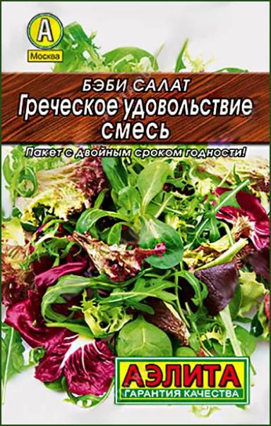 Семена Бэби салат Греческое удовольствие смесь. Быстрорастущая смесь для получения продукции бэби-лиф. Молодые листочки имеют богатый витаминно-минеральный состав, разнообразны по цветовой и вкусовой гамме. Компоненты: салаты Адамант, Гранд Рапидс, Китеж – по 15%, Лолло Росса – 5%, капуста японская Мизуна, индау (руккола) Диковина – по 20%, базилик овощной Бархат – 10%. Для непрерывного получения зелени проводят повторные посевы с интервалом 5-10 дней.